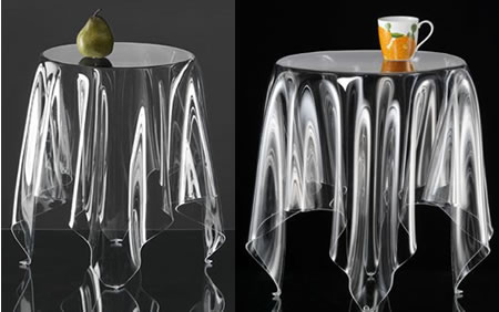 桌布就是它的秘密所在:看似柔软的透明桌布,实际上是使用3mm厚的坚硬的丙烯酸树脂制成。神奇中包涵一丝唯美,非常棒的一款设计。