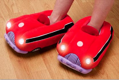 外形酷似汽车的拖鞋,穿上后,前面的大灯也会同时点亮,你猜到他是做什么用的了吗?