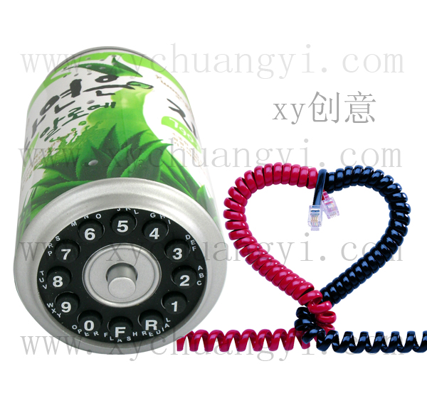 逼真的饮料易拉罐,不经意间总会有人拿起来就喝喔!话音清晰,使用简单,只需将电话线接在易拉罐的底侧面上就可以使用了。当来电或打电话时只需直接拿起就可,不使用时放下就行。易拉罐底部有开关,帮你设计成了挂机的功能。
