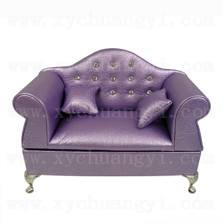 迷你亮粉皮质沙发首饰盒收纳盒化妆盒