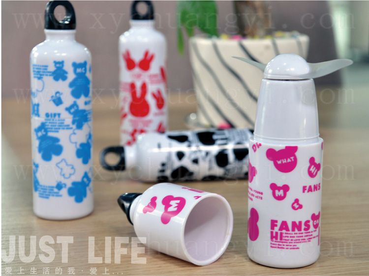产品介绍:拧开盖子,可是有绝妙作用——变身为迷你水壶小风扇,为酷热的夏日送上凉风。附有小扣子,可挂在包包上。