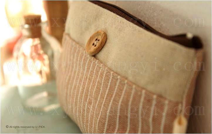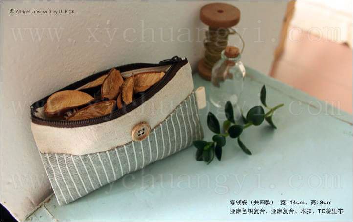 尺寸:宽20cm、高9cm材质:亚麻色织复合、亚麻复合、木扣、TC棉里布