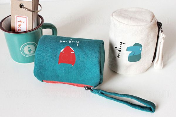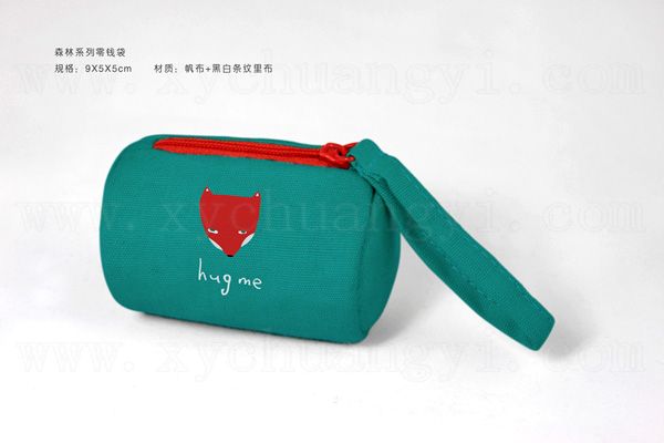 YiZi森林动物系列帆布圆形零钱包袋/钥匙包