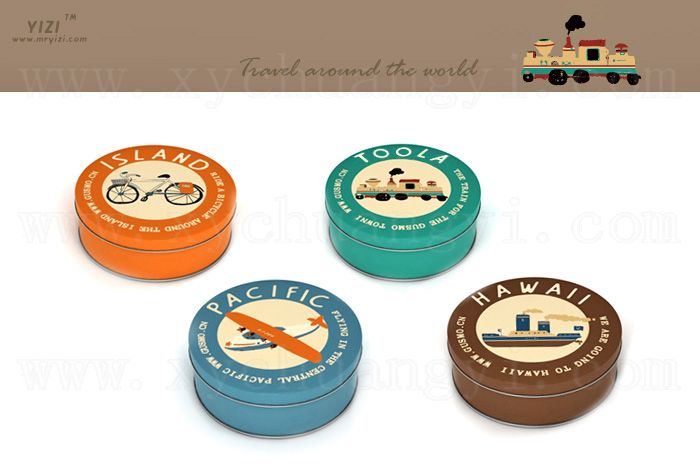 YiZi环游世界铁皮盒系列→自行车/火车/飞机/轮船小圆盒
