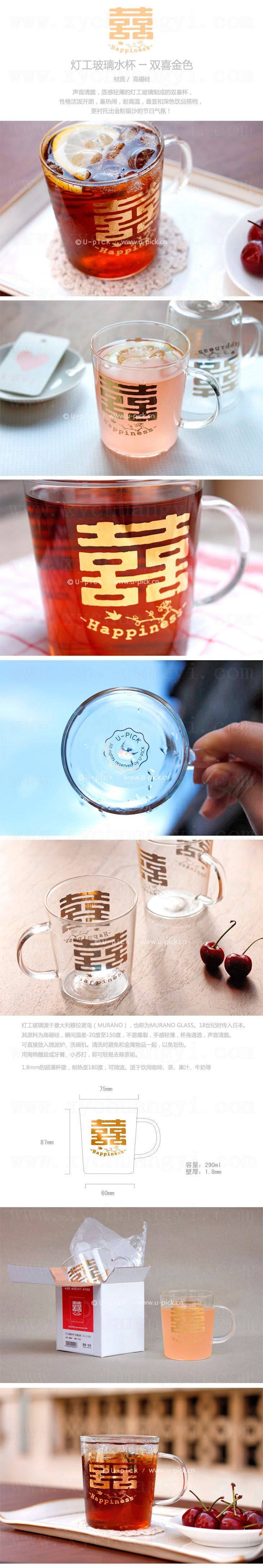 灯工玻璃水杯-双喜金色