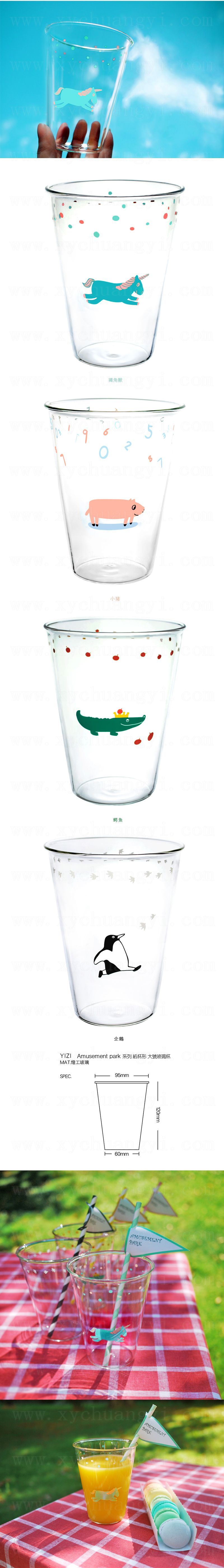 游乐场纸杯型大号玻璃杯/4款