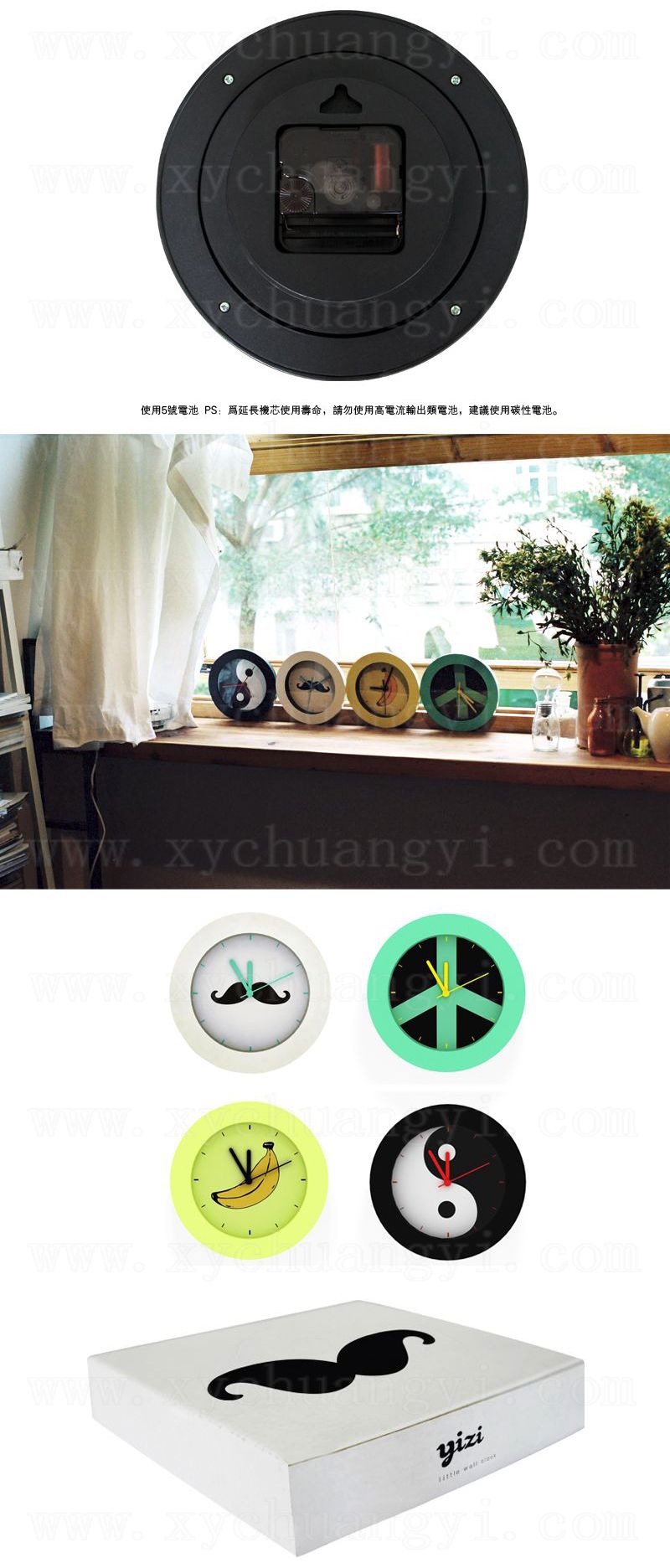 圆形小挂钟系列-胡子/反战/香蕉/八卦