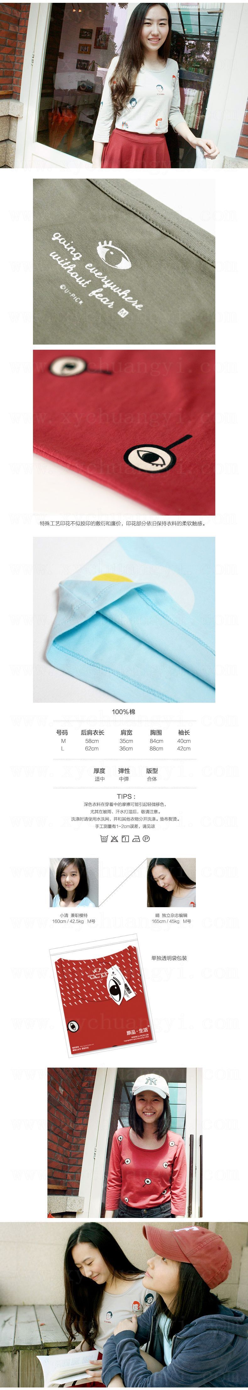 1310七分袖印花T恤-头/眼睛/煎蛋