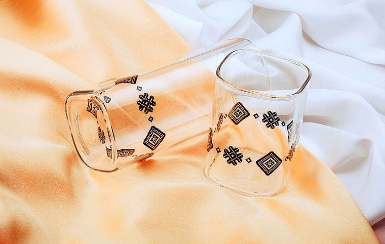 蕾丝花纹方形玻璃杯长短04款
