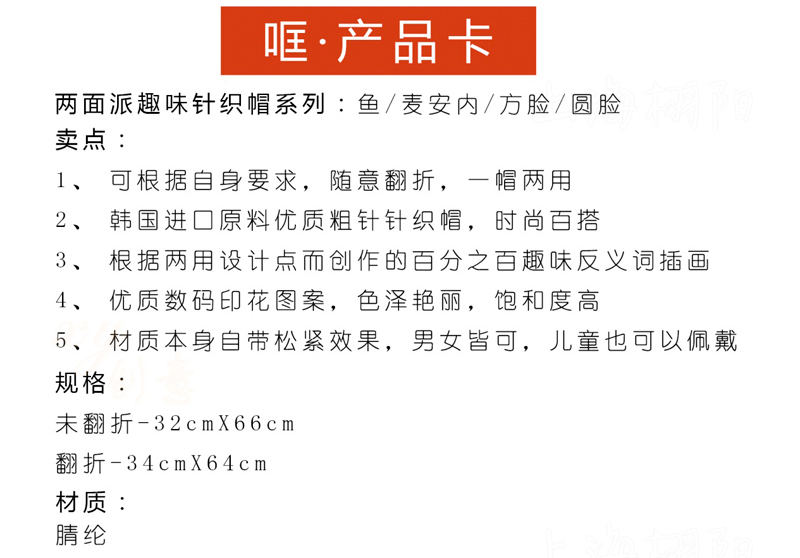 两面派趣味针织帽-鱼/麦安内/方脸/圆脸