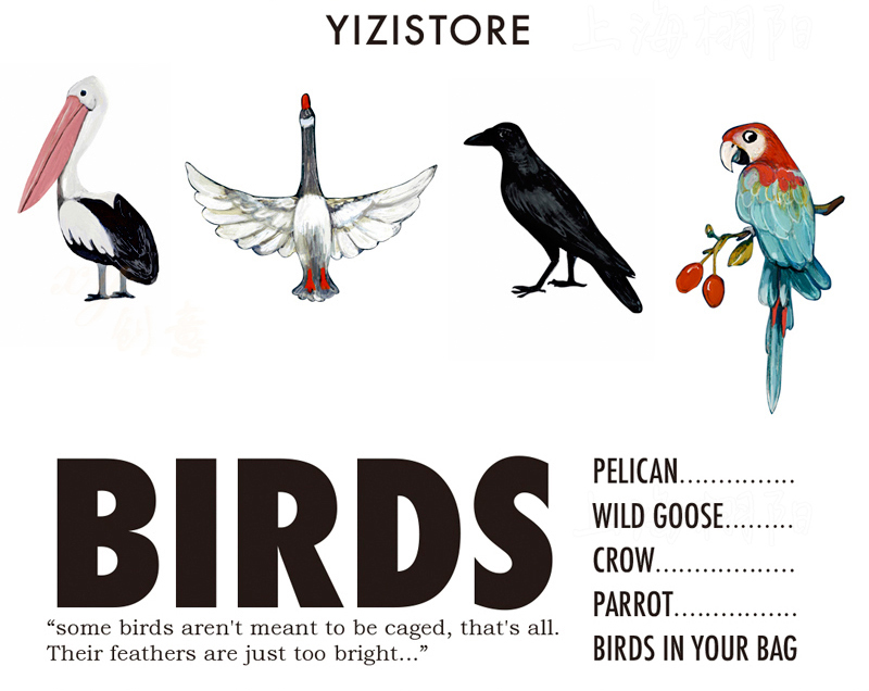 YIZI飞禽水桶挎包系列-大雁/鹈鹕/鹦鹉/乌鸦