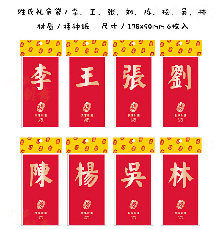 姓氏礼金袋-李/王/张/刘/陈/杨/吴/林