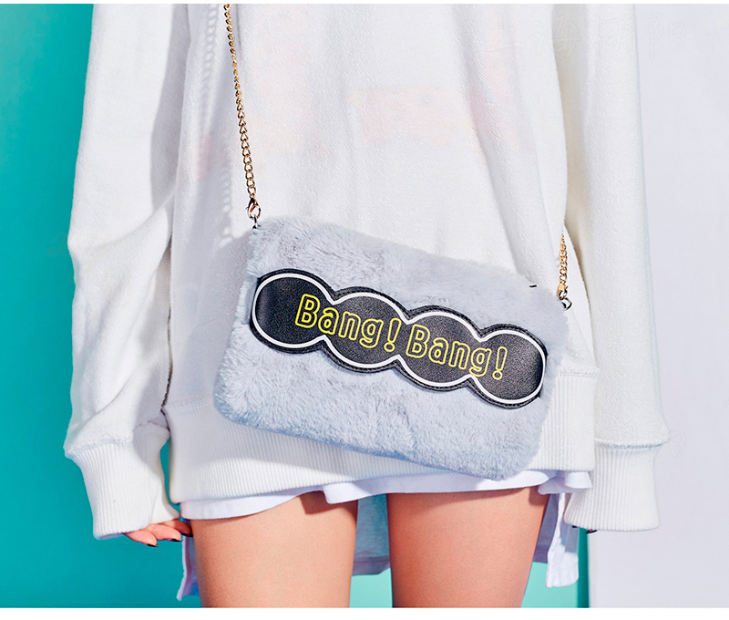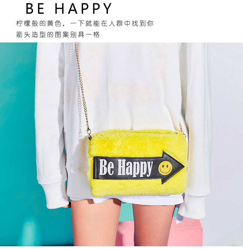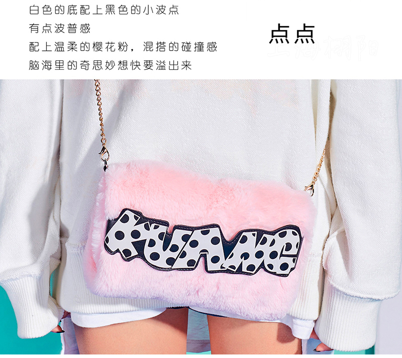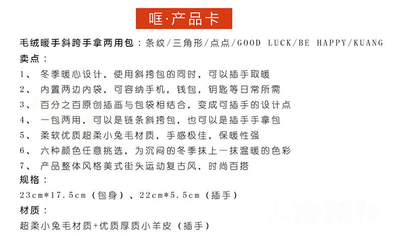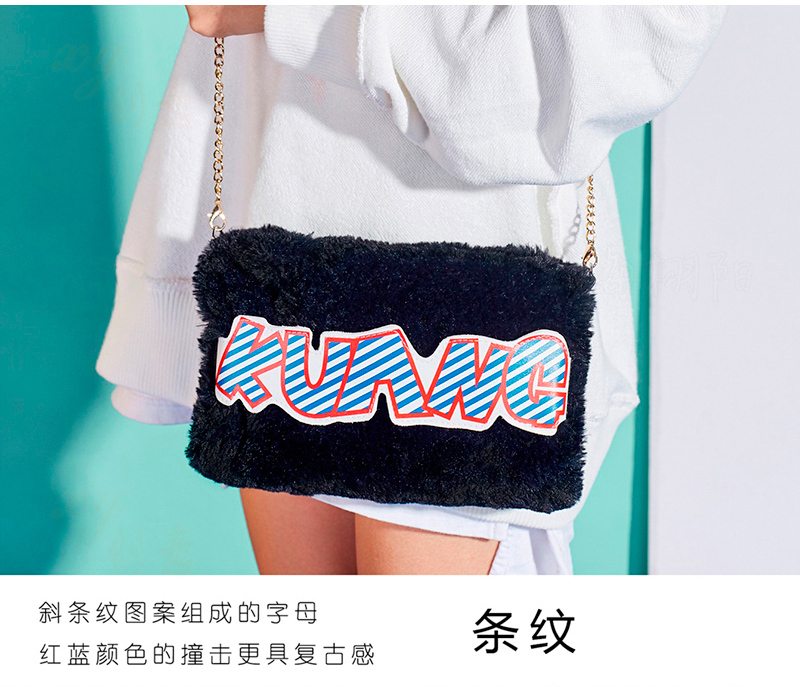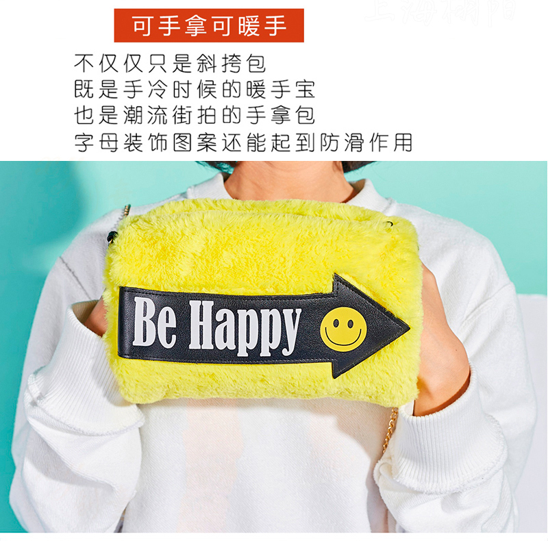 毛绒暖手斜跨手拿多用包-条纹/三角形/点点/GOODLUCK/BEHAPPY/KUANG