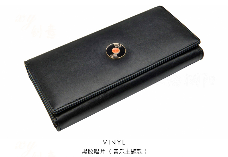 kiitos经典系列长款三折皮革钱包-黑胶唱片/宝丽来相纸/阅读/场记板