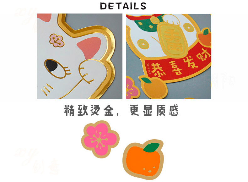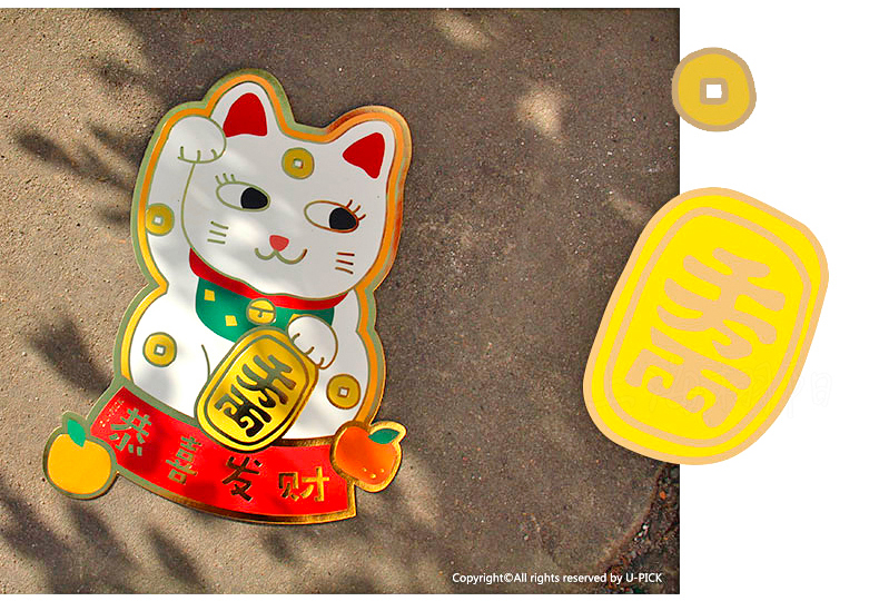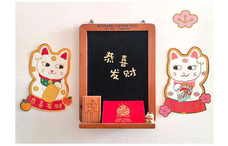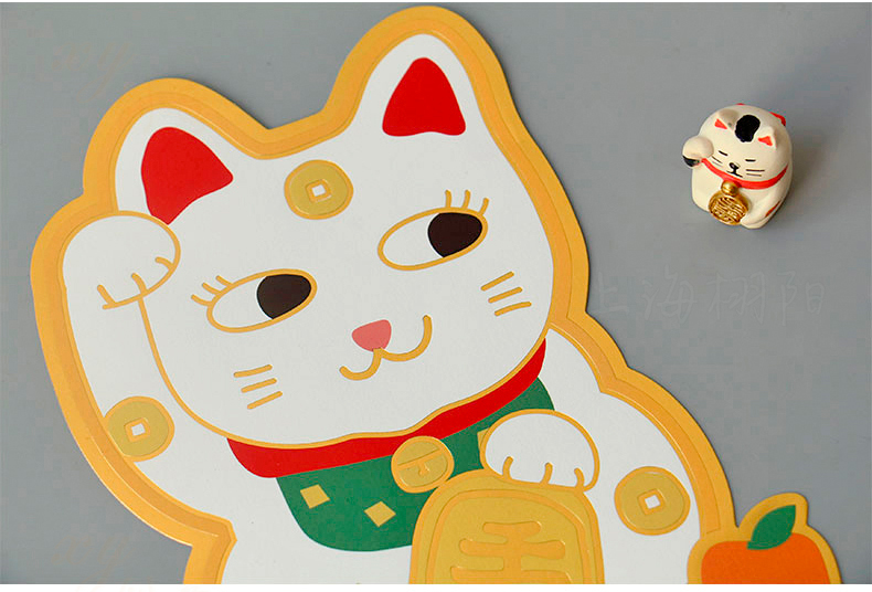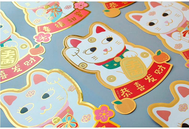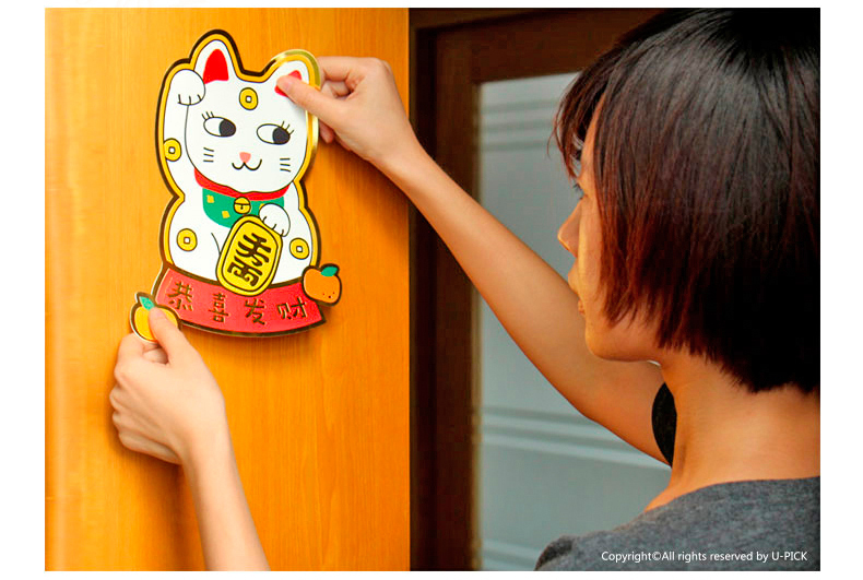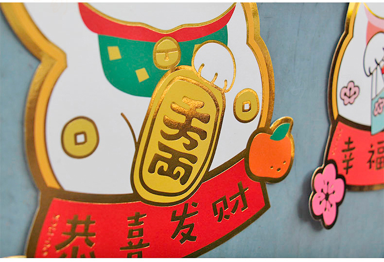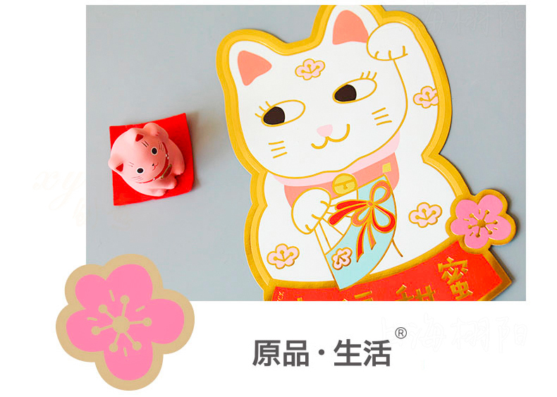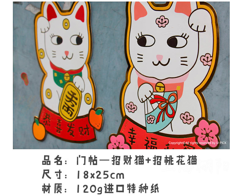 原品招财猫新年门贴-招财+招桃花