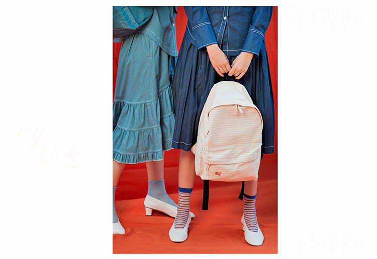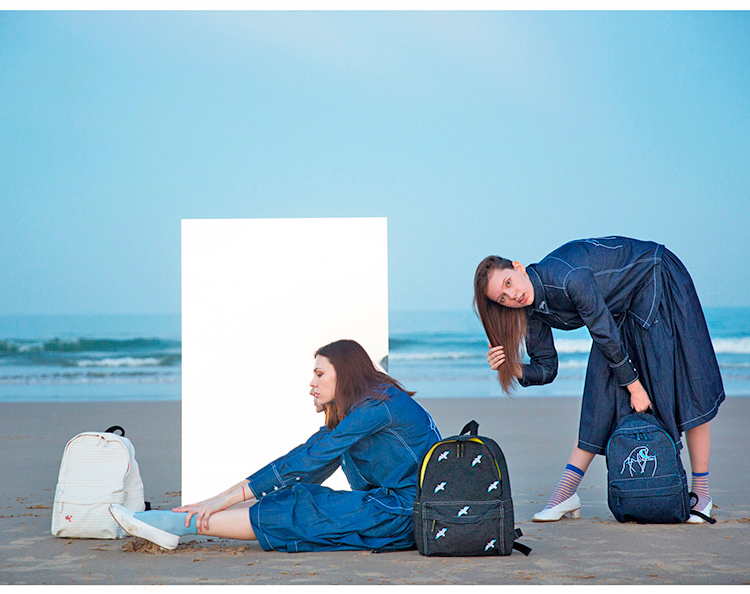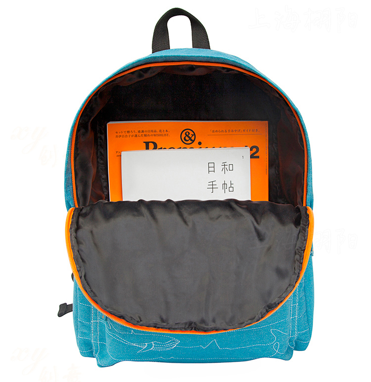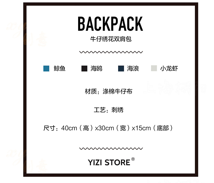 YIZI牛仔刺绣双肩包-鲸鱼/海鸥/海浪/小龙虾