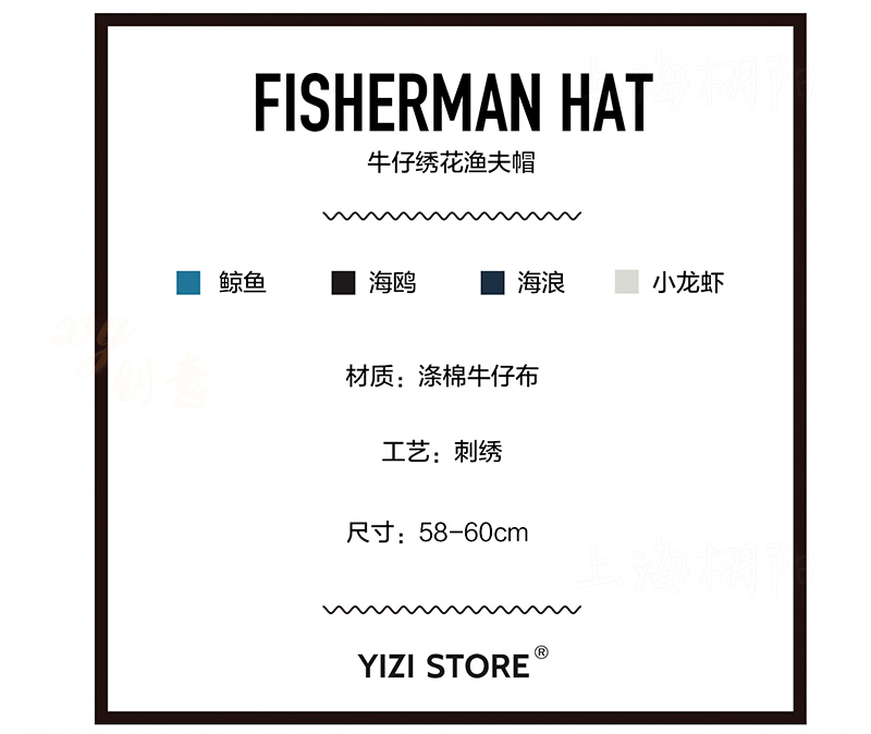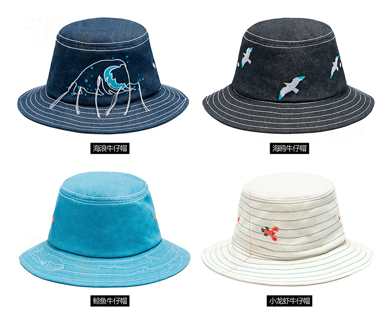 YIZI刺绣牛仔帽-鲸鱼/海鸥/海浪/小龙虾