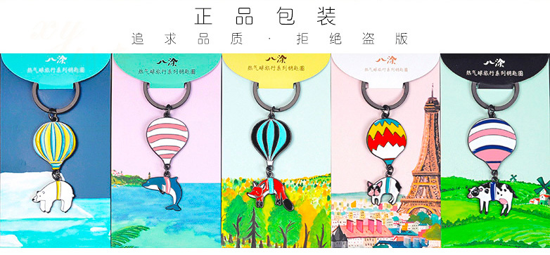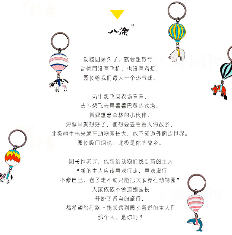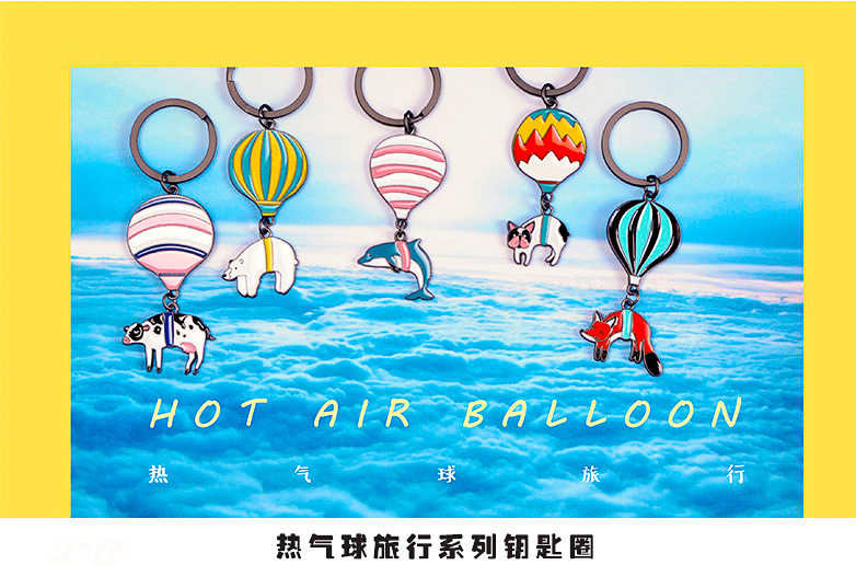 热气球旅行系列钥匙圈-奶牛/北极熊/海豚/法斗/狐狸