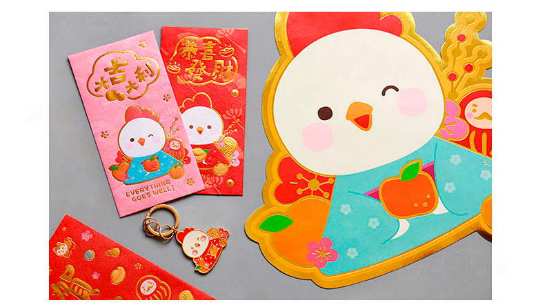 原品新年系列印钞鸡钥匙扣