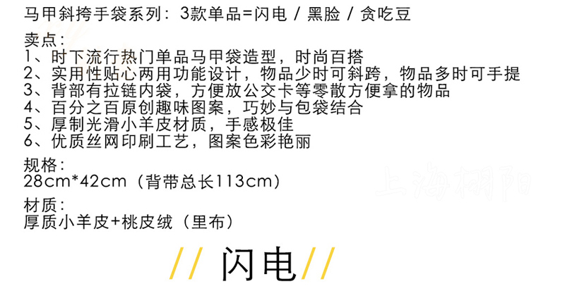 哐花村马甲斜挎手袋-闪电/黑脸/贪吃豆