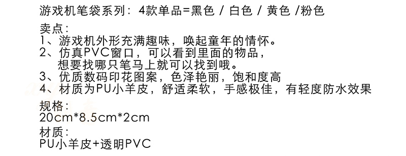 哐花村游戏机笔袋-黄色/黑色/白色/粉色