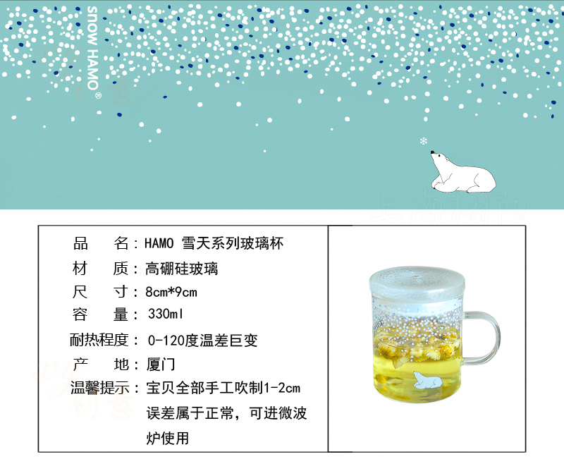 HAMO雪天系列玻璃杯-哈士奇/梅花鹿/北极熊