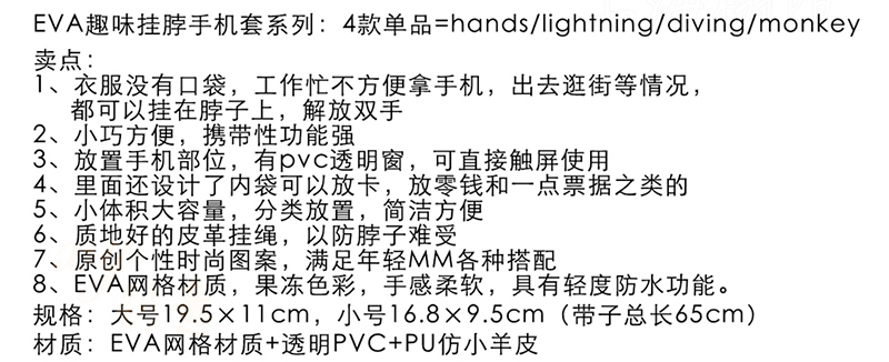 EVA趣味挂脖手机套-大小号-hands/lightning/diving/monkey