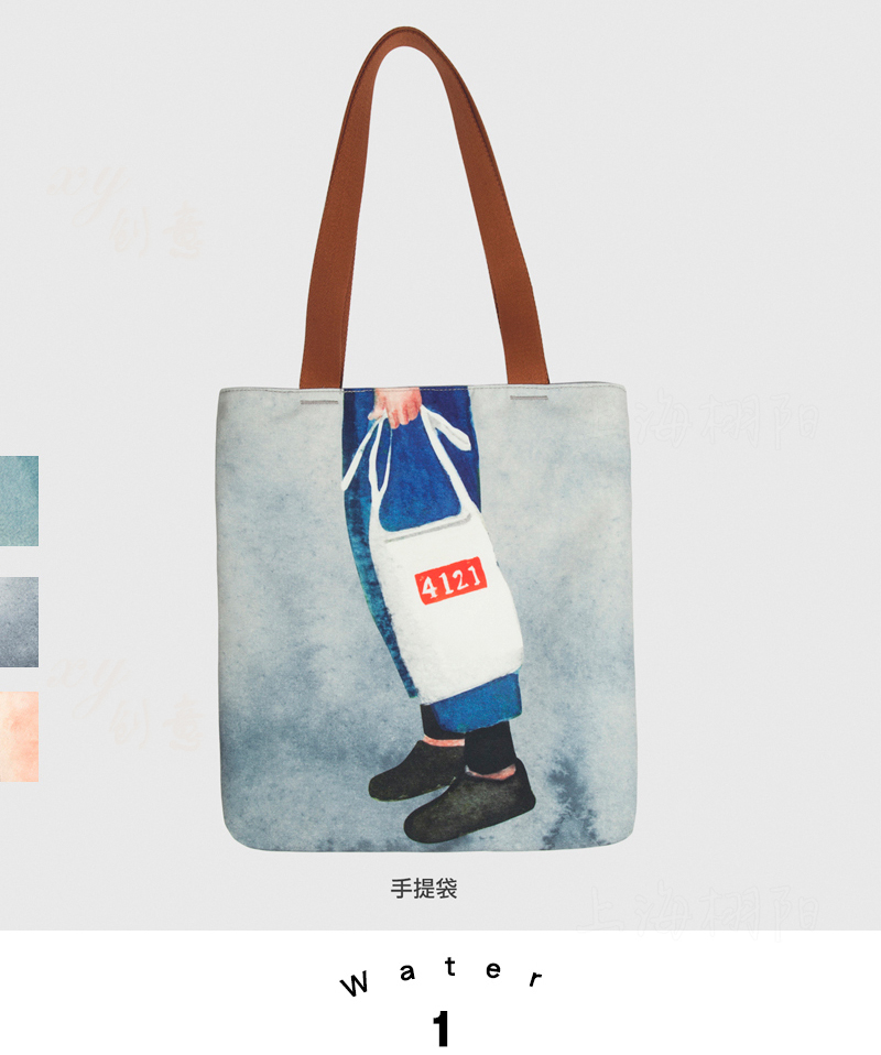 YIZI水彩系列单肩包-浪/水面/手提袋