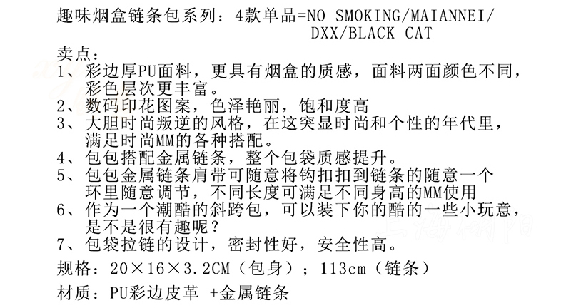 哐花村趣味烟盒链条包-no smoking/maiannei/dxx/black cat