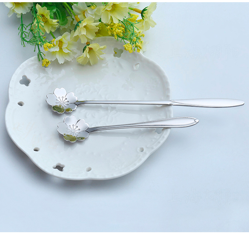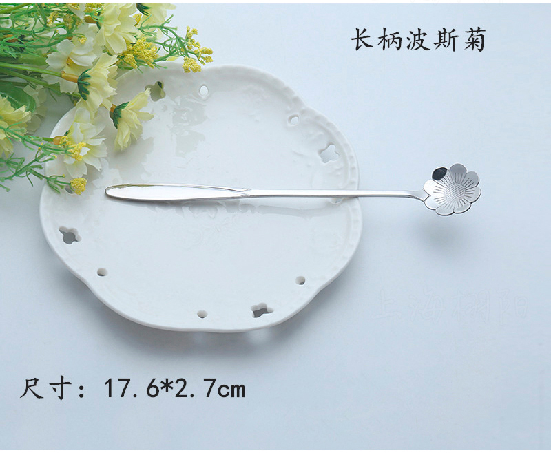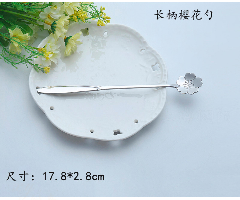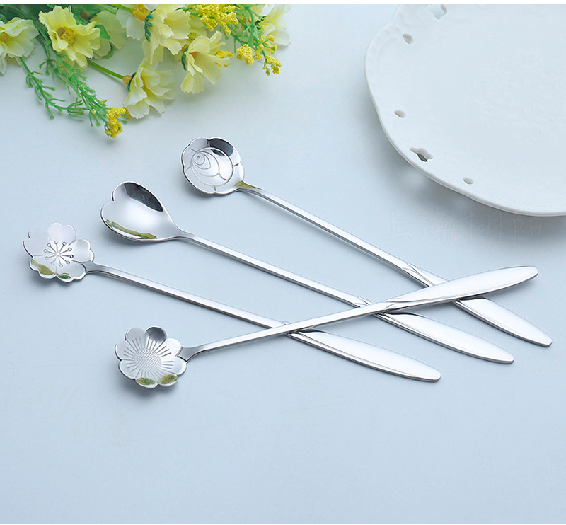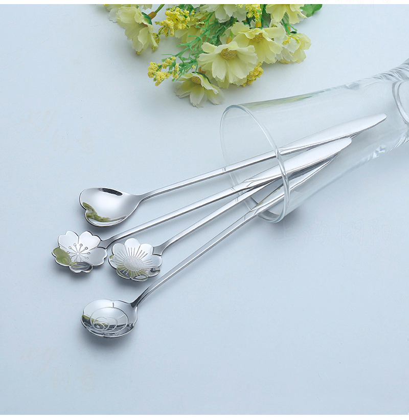 日式长柄不锈钢花朵勺-樱花/玫瑰/心形/波斯菊