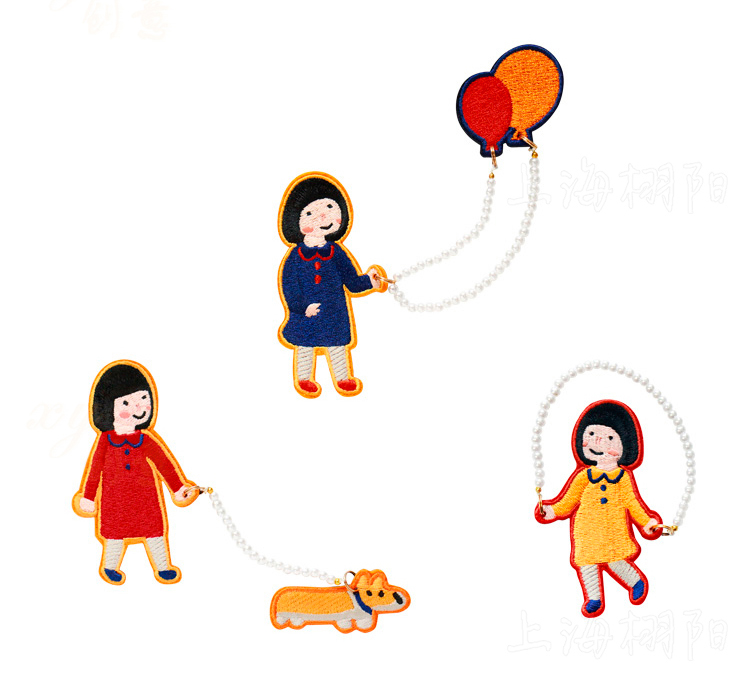 啊拔系列刺绣胸针-遛狗/跳绳/气球