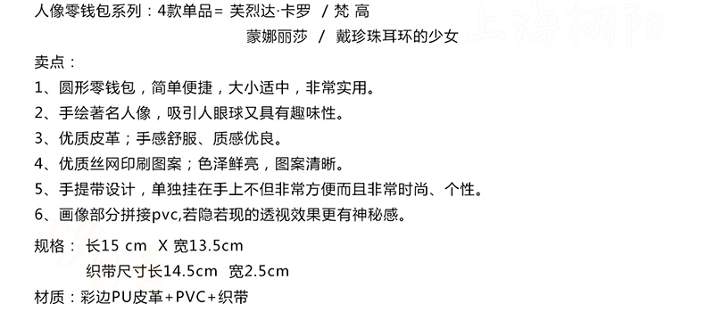 哐花村人像零钱包-芙烈达·卡罗/梵高/蒙娜丽莎/带珍珠耳环的少女