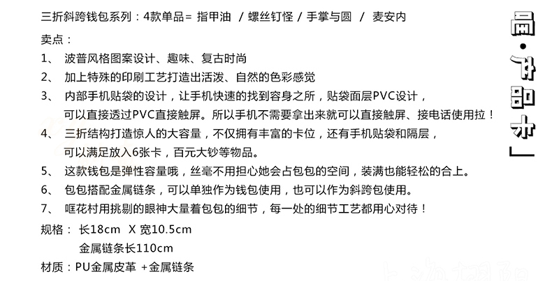 哐花村三折斜跨钱包-指甲油/螺丝钉怪/手掌与圆/麦安内