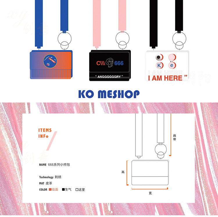 komeshop666渐变小挎包-黑色/橙色/白色