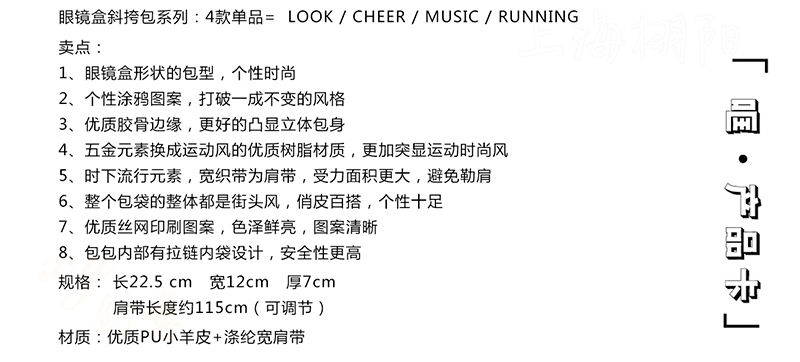 哐花村眼镜盒斜挎包-look/cheer/music/running