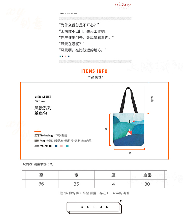 YIZI风景单肩包-雪山/大海/飞机/农场