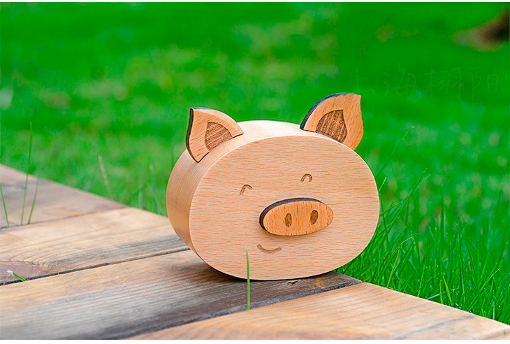 杯子动物木质旋转音乐盒-呆猫/呆熊/兔子