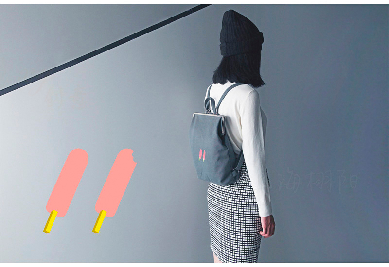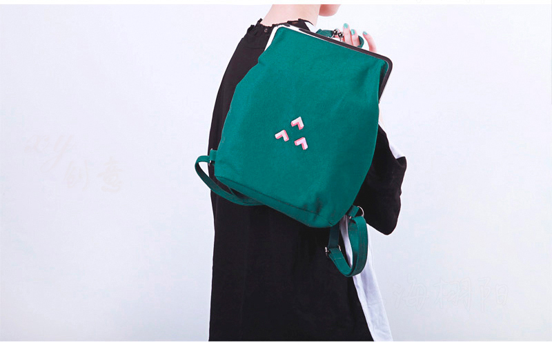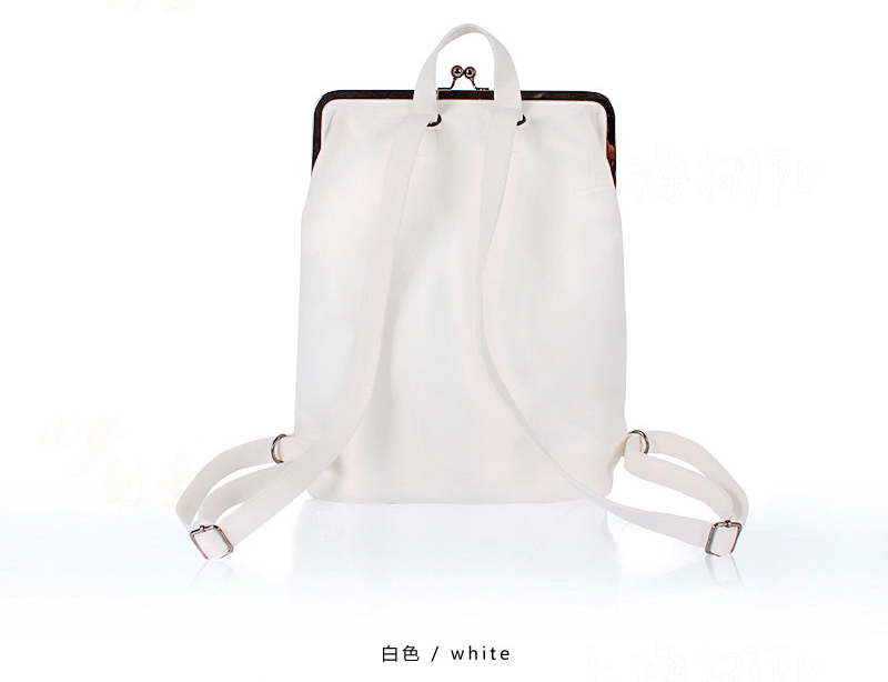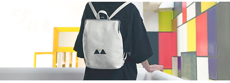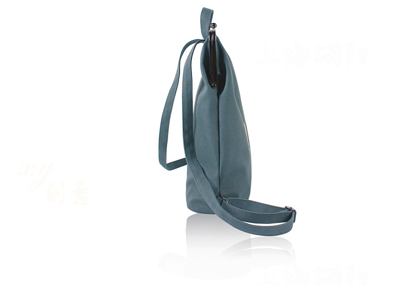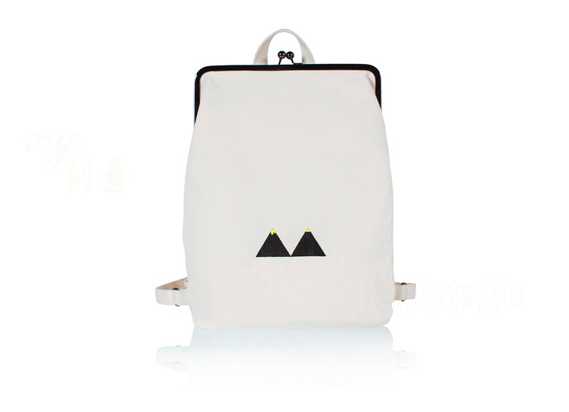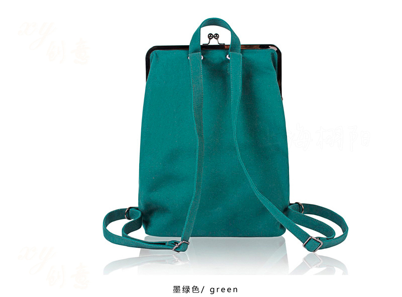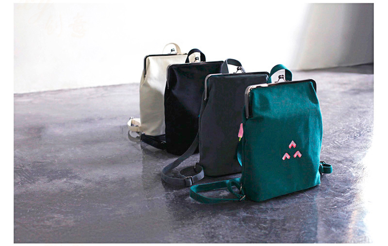 YIZI文艺帆布口金刺绣双肩包-黑/墨绿/白/深灰