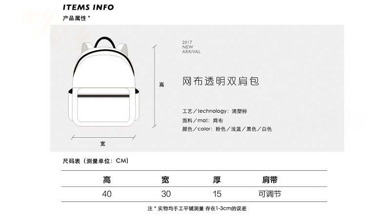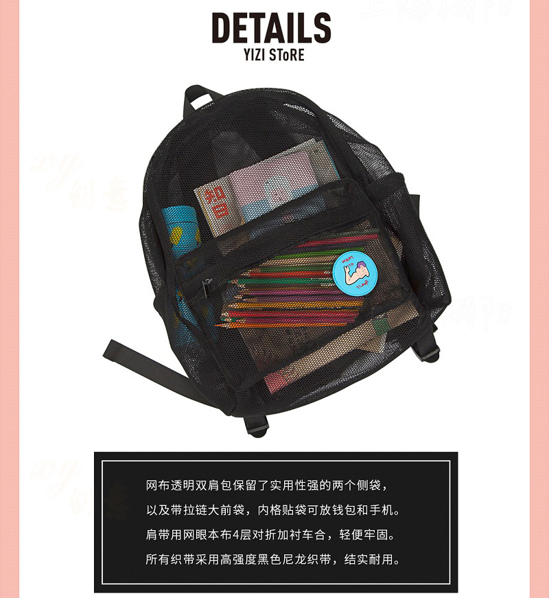 YIZI网布透明双肩包-粉色/浅蓝/黑色/白色