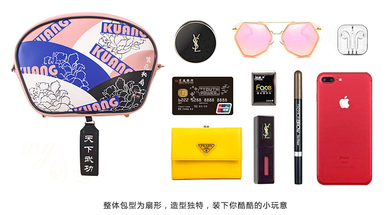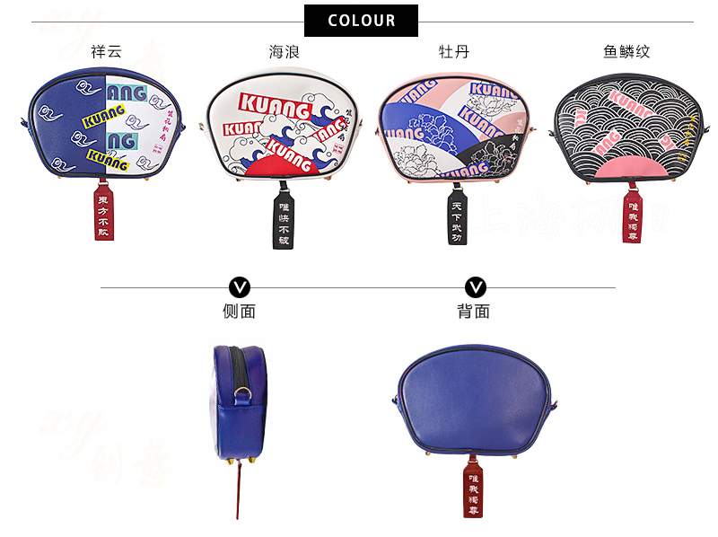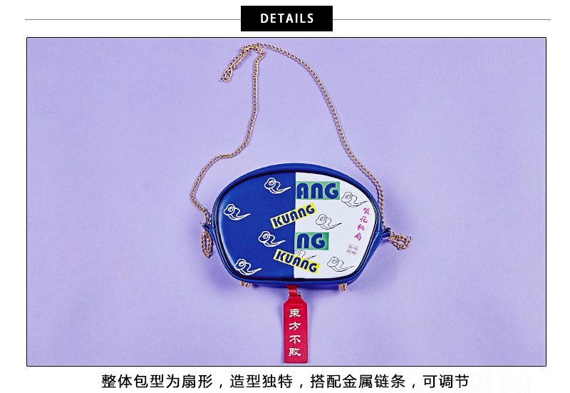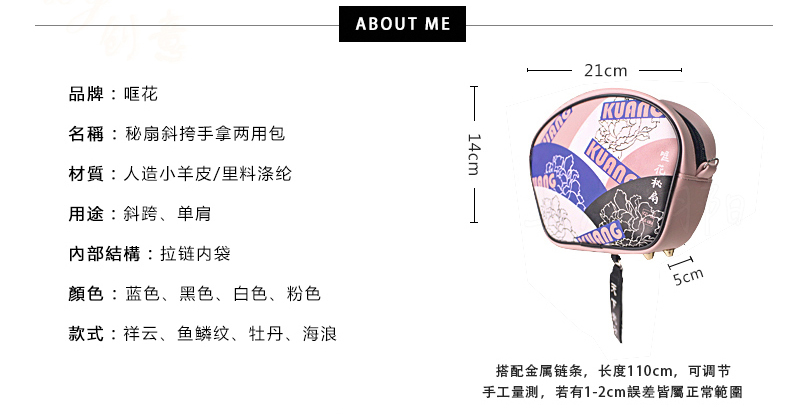 哐花村扇形链条斜挎包-海浪/牡丹/祥云/鱼鳞纹