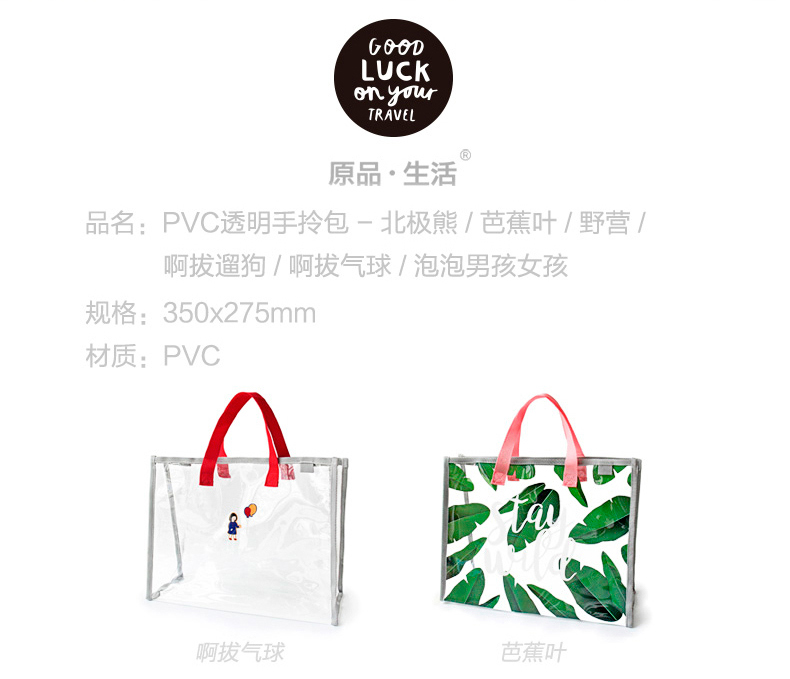 U-PICK原品生活PVC透明手拎包-北极熊/芭蕉叶/野营/啊拔遛狗/啊拔气球/泡泡