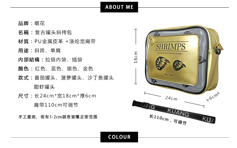哐花村复古罐头斜挎包-菠萝/番茄/甜虾/沙丁鱼
