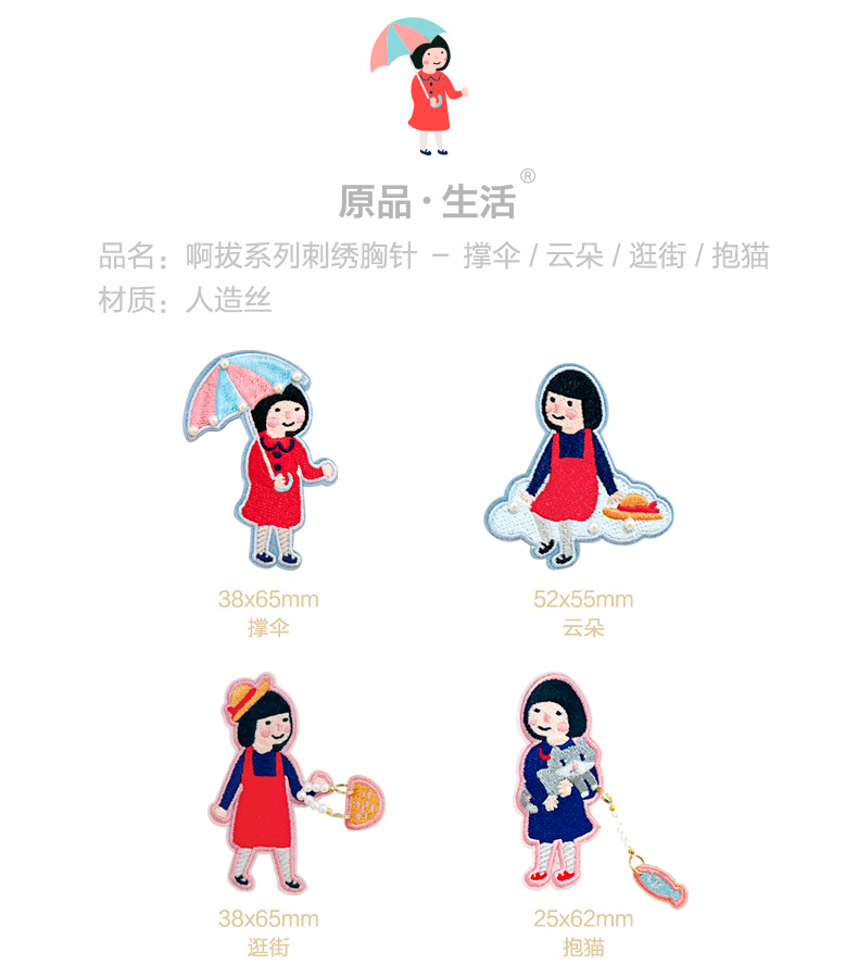 啊拔系列刺绣胸针-撑伞/逛街/抱猫/云朵