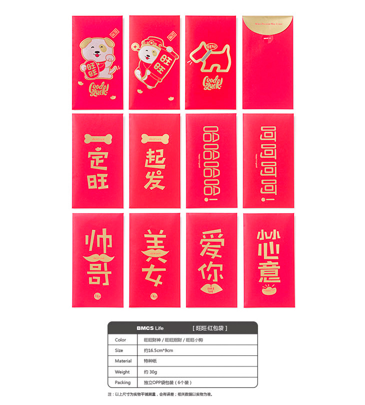 旺旺红包袋6入装-招财旺/财神旺/小狗旺旺