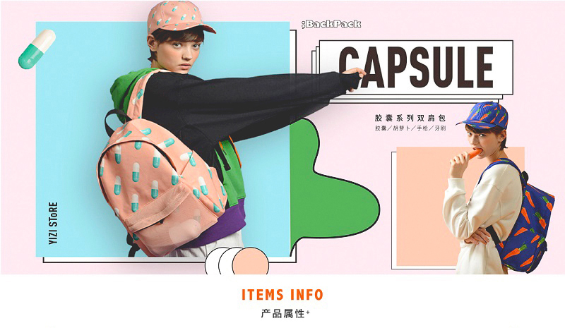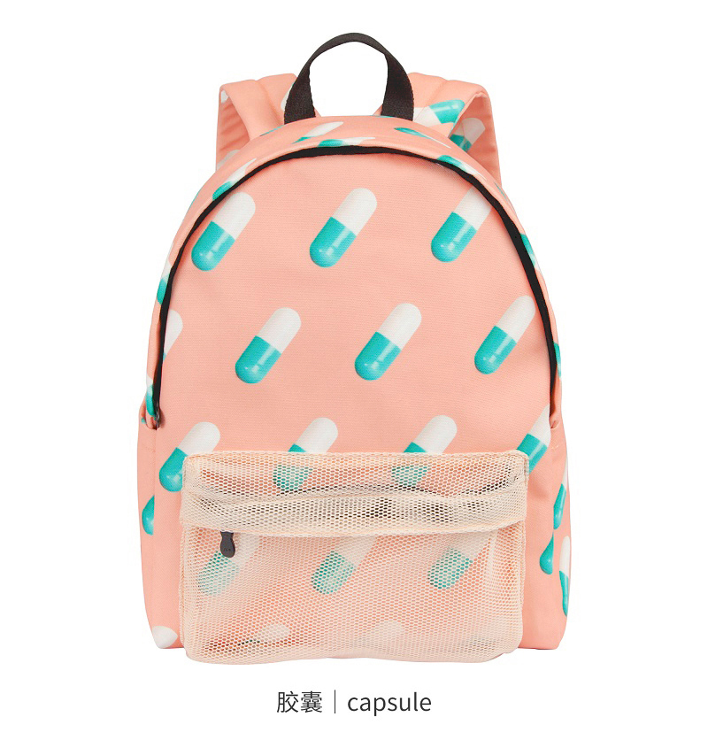 YIZI胶囊系列帆布印花双肩包-牙刷/胶囊/手枪/萝卜