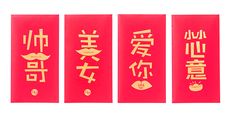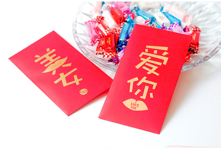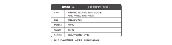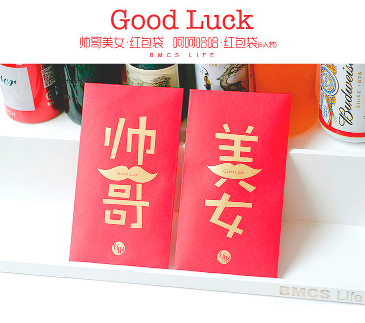 新年六片装红包袋-爱你/小小心意/帅哥/美女/一定旺/一起发/呵呵呵呵/哈哈哈哈