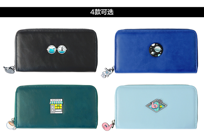 kiitos遇见系列长款皮革钱包-星球/眼镜/咖啡店/游泳池