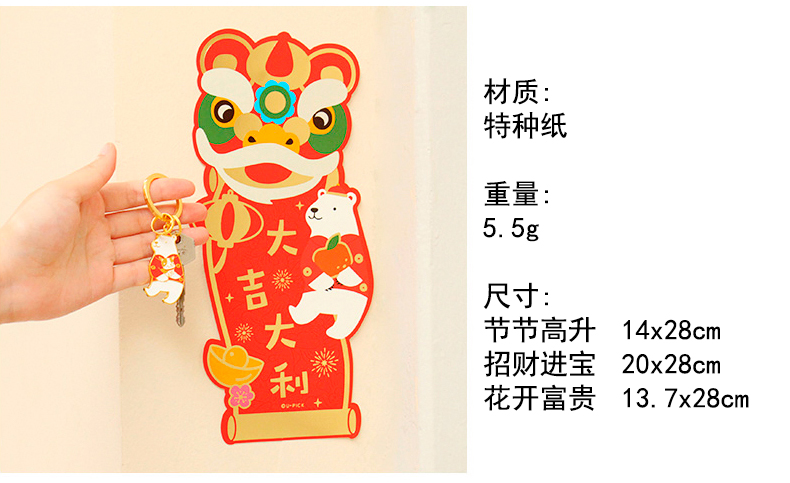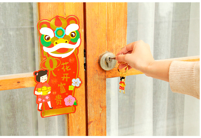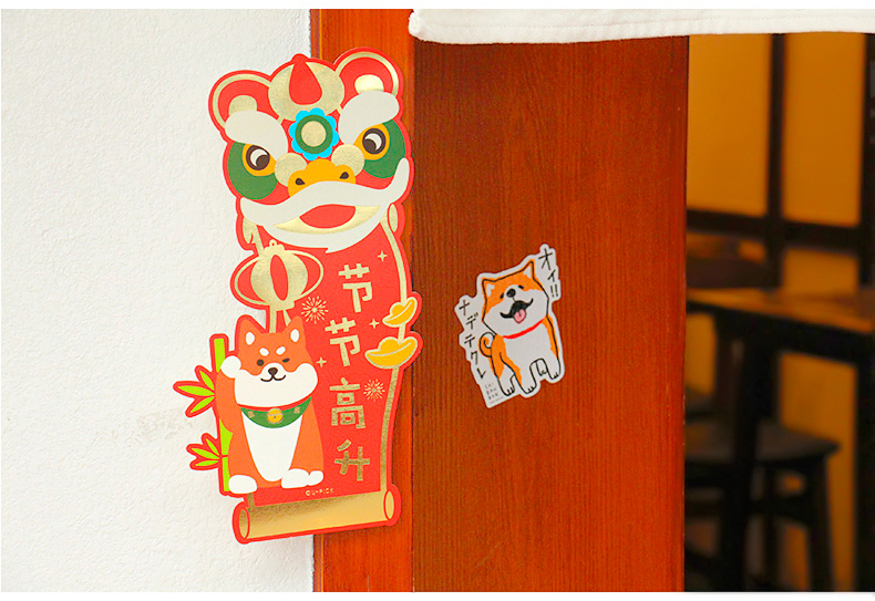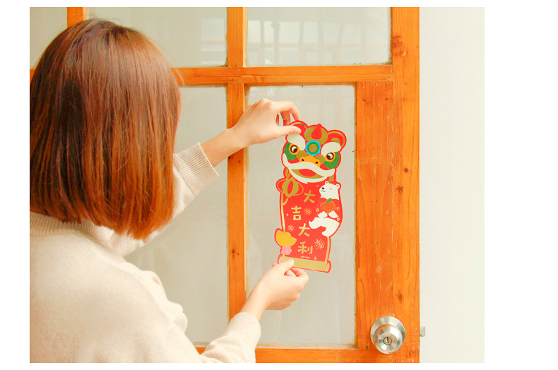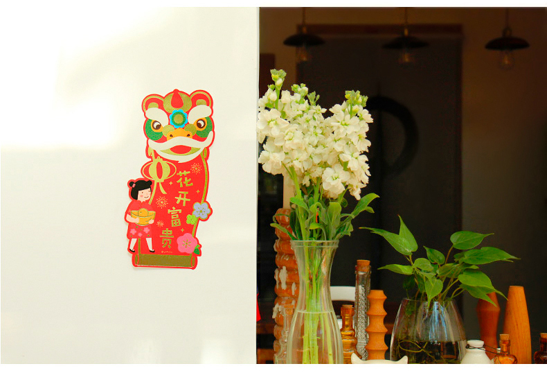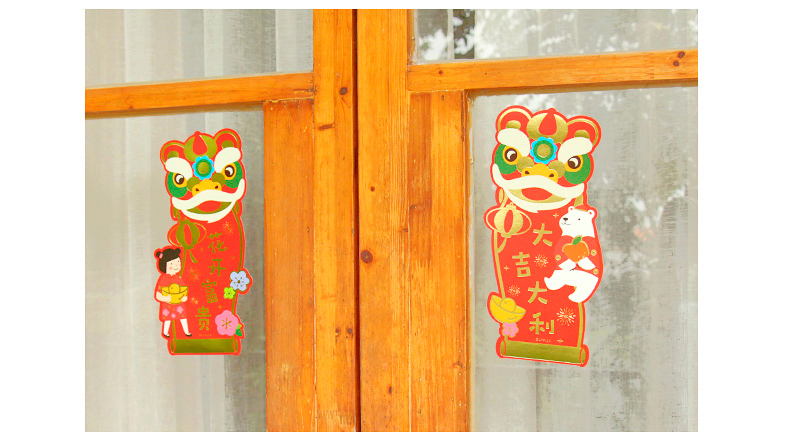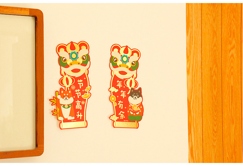 原品舞狮对装门贴-花开富贵/节节高升/招财进宝