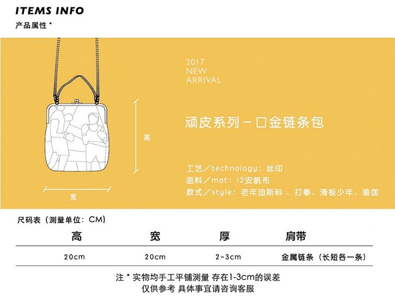 YIZI顽皮系列链条口金包-老年迪斯科/打拳/瑜伽/滑板少年