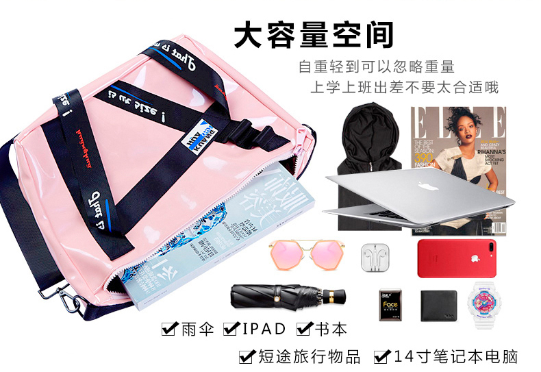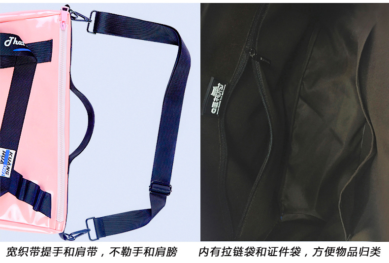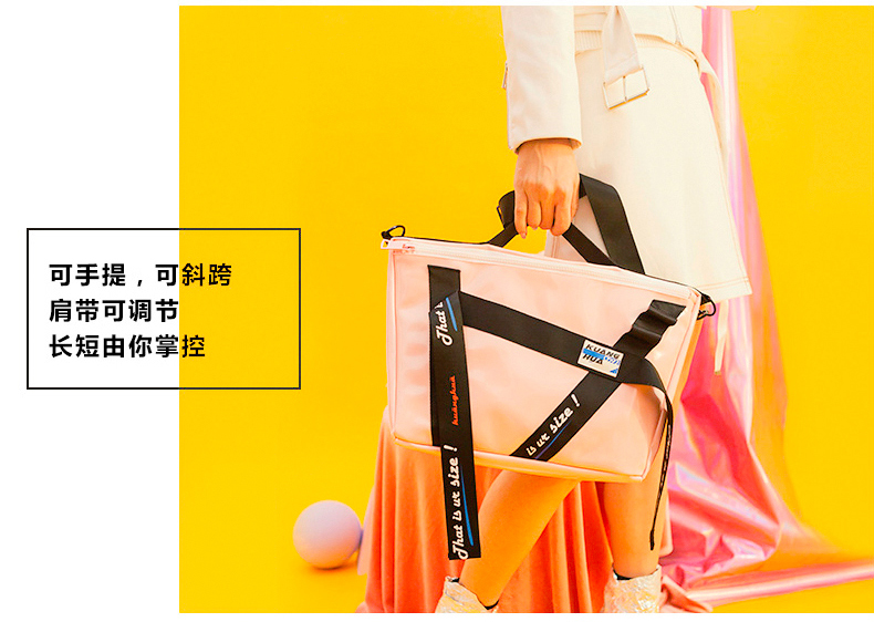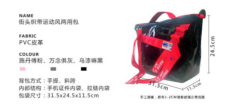 哐花村街头织带运动风两用包-灰色/黑色/粉色